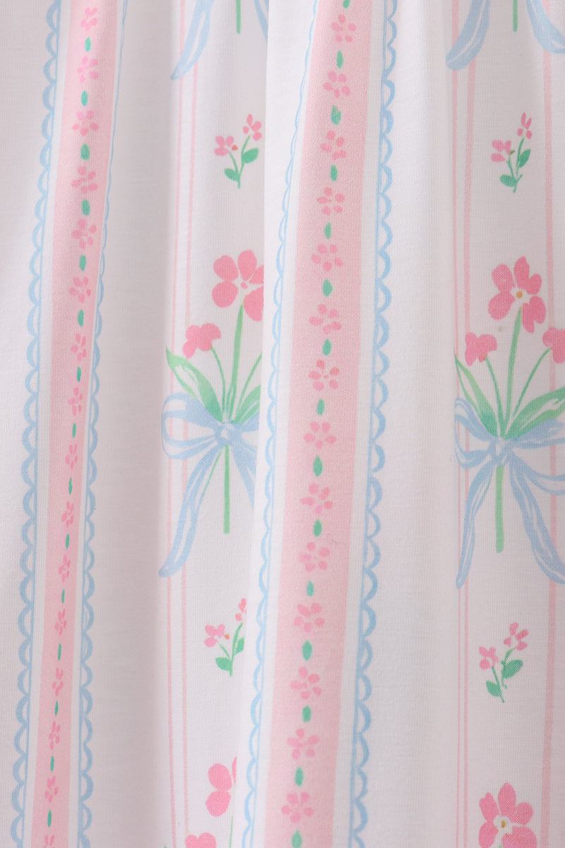 Blue floral I love MAMA smocked ruffle dress