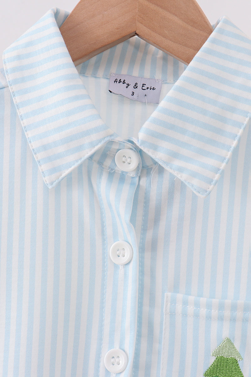 Christmas tree embroidery button down shirt