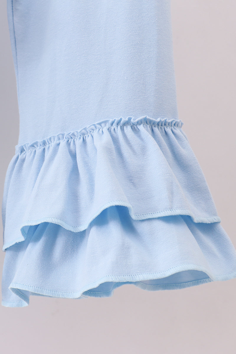 Bring festive cheer to your little one’s wardrobe with this Navy Nativity Embroidery Plaid Ruffle Pants Set. Featuring charming nativity-themed embroidery and playful plaid patterns, these pants combine holiday spirit with cozy comfort. The delicate ruffle details add a whimsical touch, making it perfect for merry gatherings or joyful playdates. Soft fabric ensures all-day ease, while the unique design keeps your child stylishly festive.