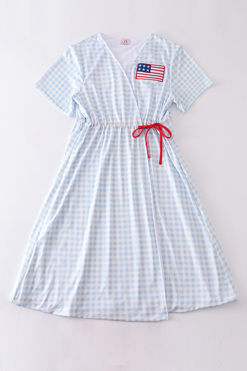 Get ready for some fun in the sun with our Patriotic Plaid Flag Embroidery Woman Bikini Swim Cover Up! Embrace your American pride in this playful and stylish cover-up that features a patriotic plaid flag embroidery design. Perfect for beach days, pool parties, and 4th of July celebrations. Don't miss out on this unique and quirky must-have.